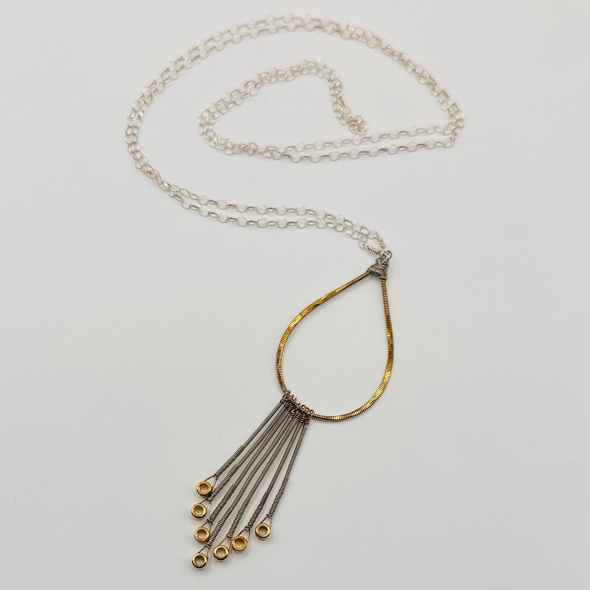 Hammered tear drop shape with string ends on 30" sterling silver chain